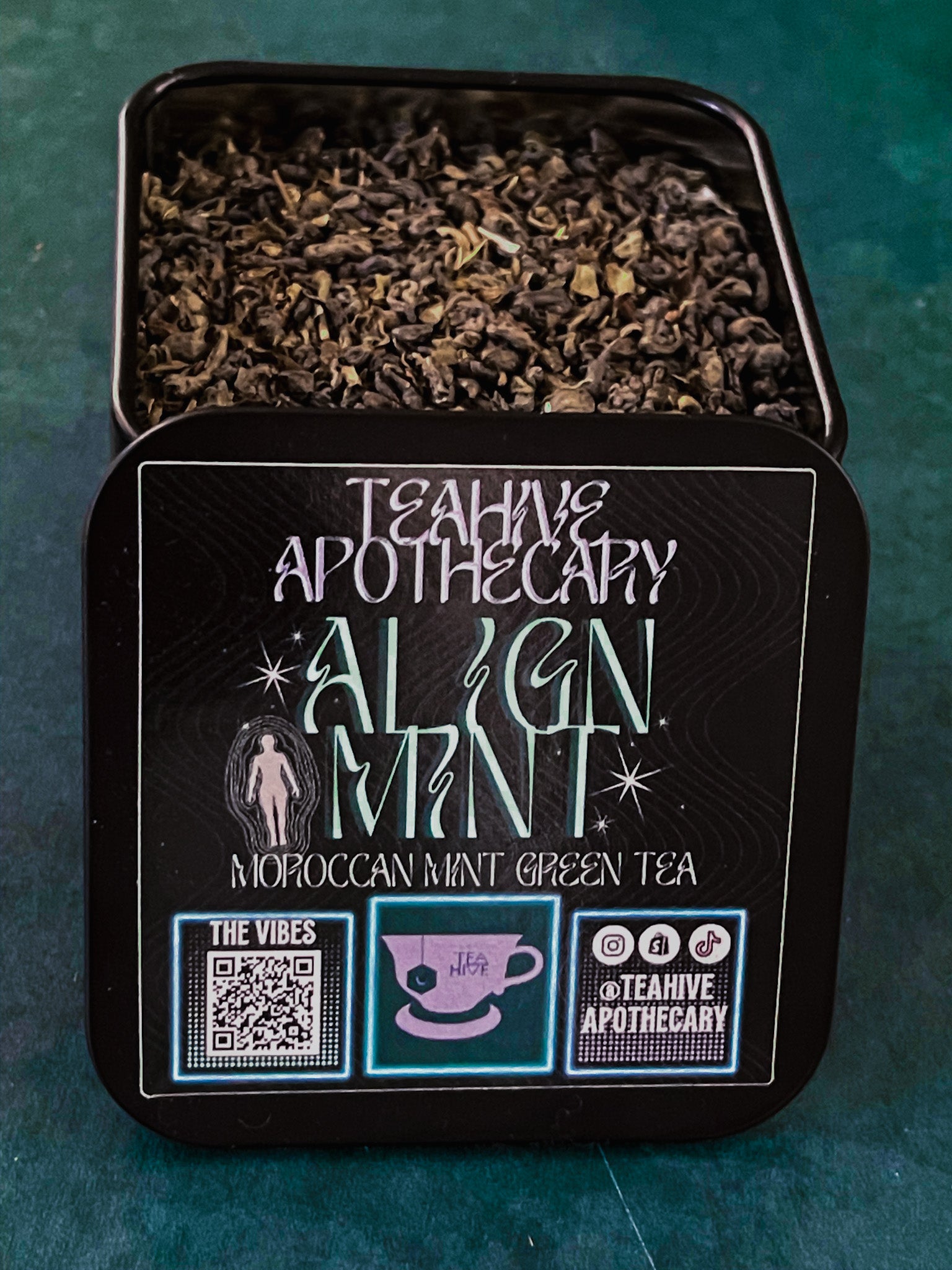 Introducing ALIGN-MINT, a refreshing and invigorating Moroccan mint green tea blend designed to help you find harmony and balance in your day. This exceptional fusion of premium green tea leaves and vibrant peppermint leaves creates a harmonious blend that awakens the senses and uplifts the spirit. The cool and crisp flavor of peppermint harmonizes perfectly with the delicate grassy notes of green tea, offering a revitalizing and soothing experience with each sip. Let the minty aroma and brisk taste of ALIGN-MINT transport you to a peaceful oasis, where the cares of the world melt away. Sip this delightful tea throughout the day to invigorate your senses, improve focus, and promote a sense of well-being. Embrace the refreshing power of ALIGN-MINT and embark on a journey of balance and alignment.