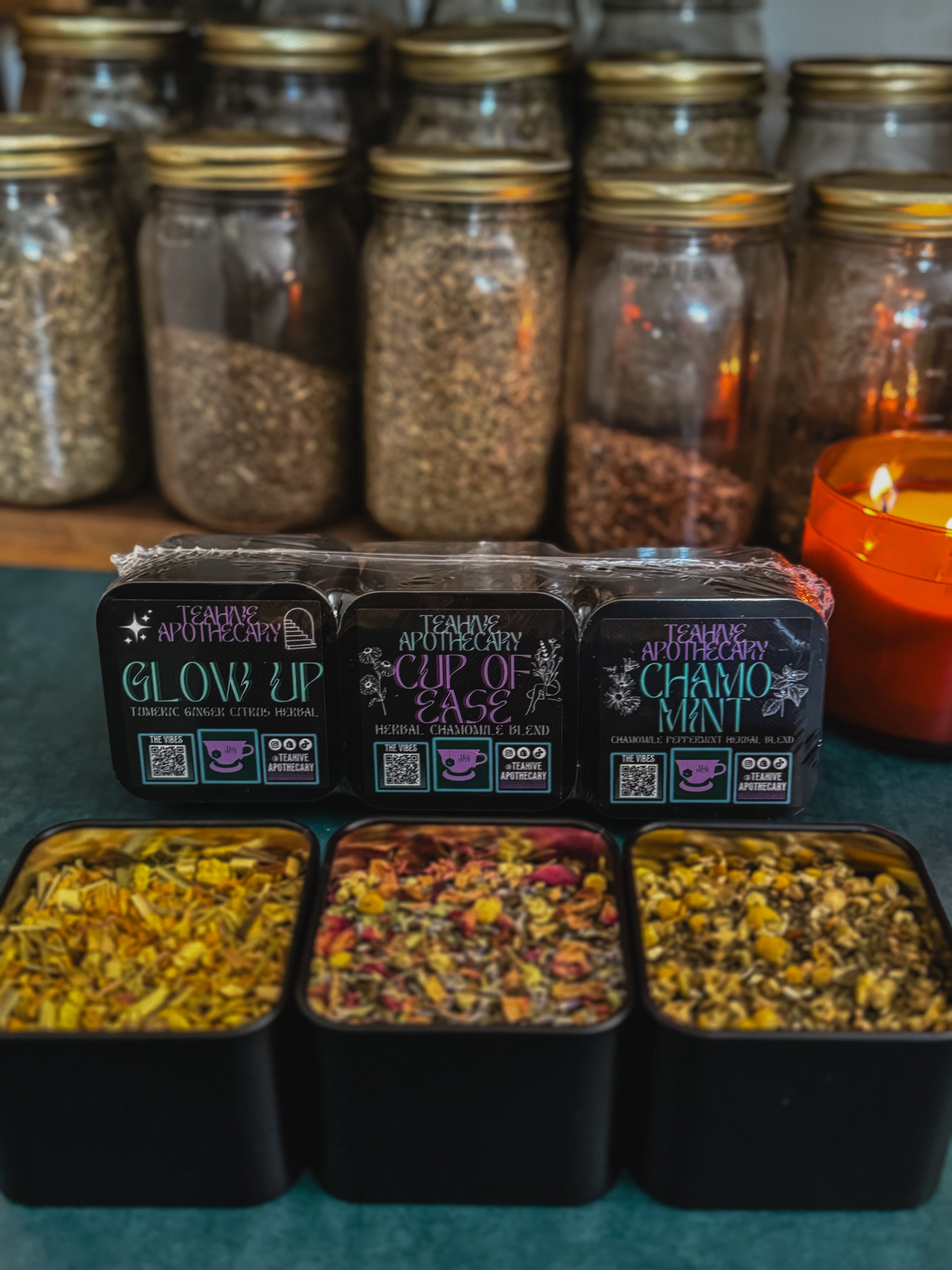 ![HERBAL TEA FLIGHT [CHAMOMINT/GLOW UP/CUPOFEASE]](http://teahiveapothecary.com/cdn/shop/files/Cup_Of_Ease_8630699e-c5c6-469f-a4bf-0da5efad91b1.jpg?v=1701367980&width=1445)