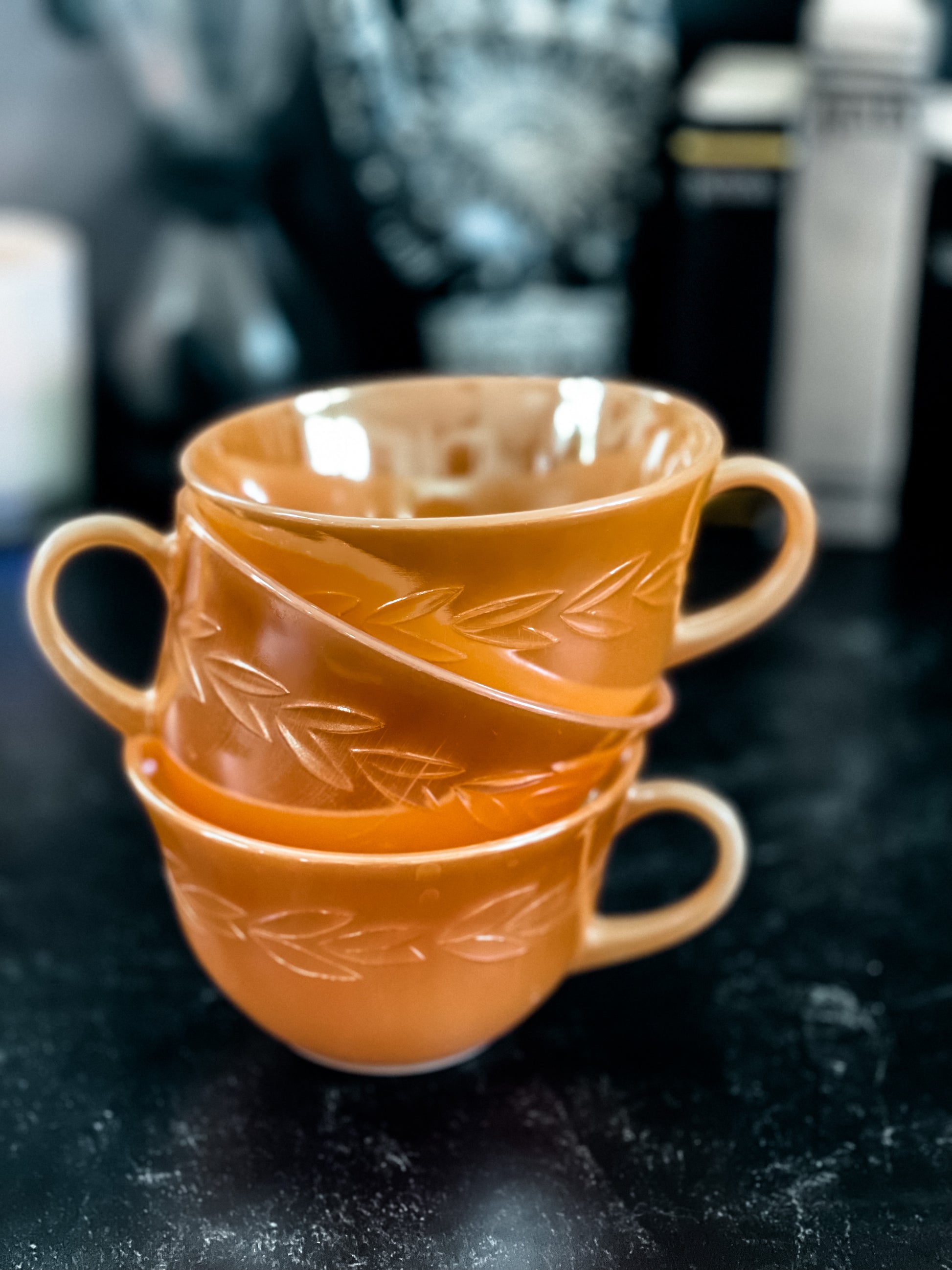 Vintage FireKing Peach Luster Teacups