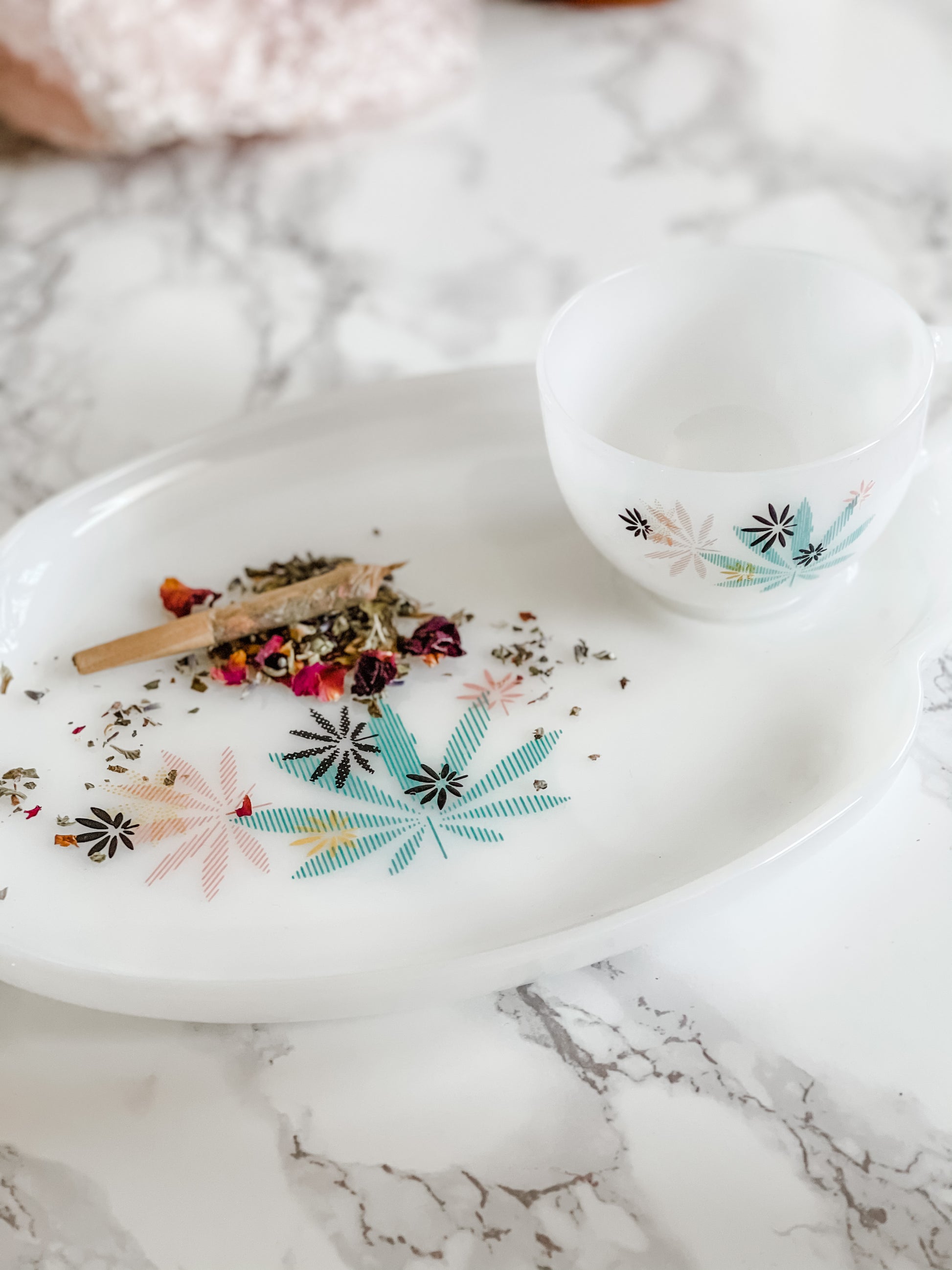 High tea time! We love a little tea & toke moment, and this vintage set is perfect to enjoy your Teahive Tea Magick Blends and have space to roll your favorite smokable herbs, or even have some munchies on the side!