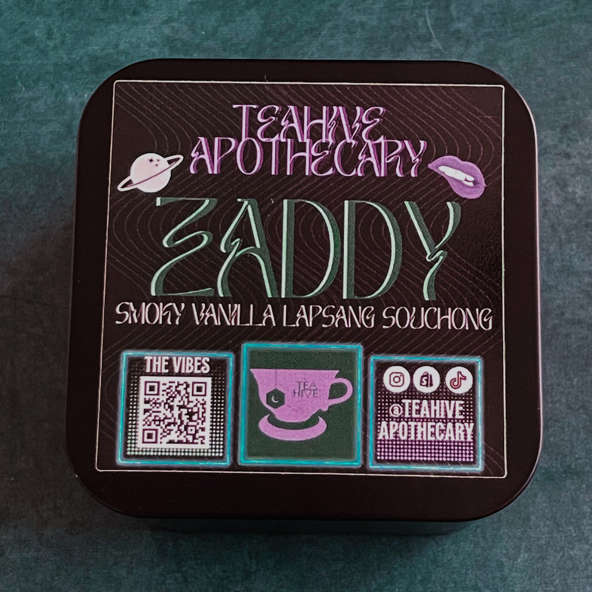 Zaddy is a strong bold smoky lapsang souchong tea with sensual creamy vanilla balance that will have you feeling like you're wrapped up in some strong arms being told "I got you babygirl"...but like, metaphorically because we harness Saturn's energy to become our own Zaddys, obv.
